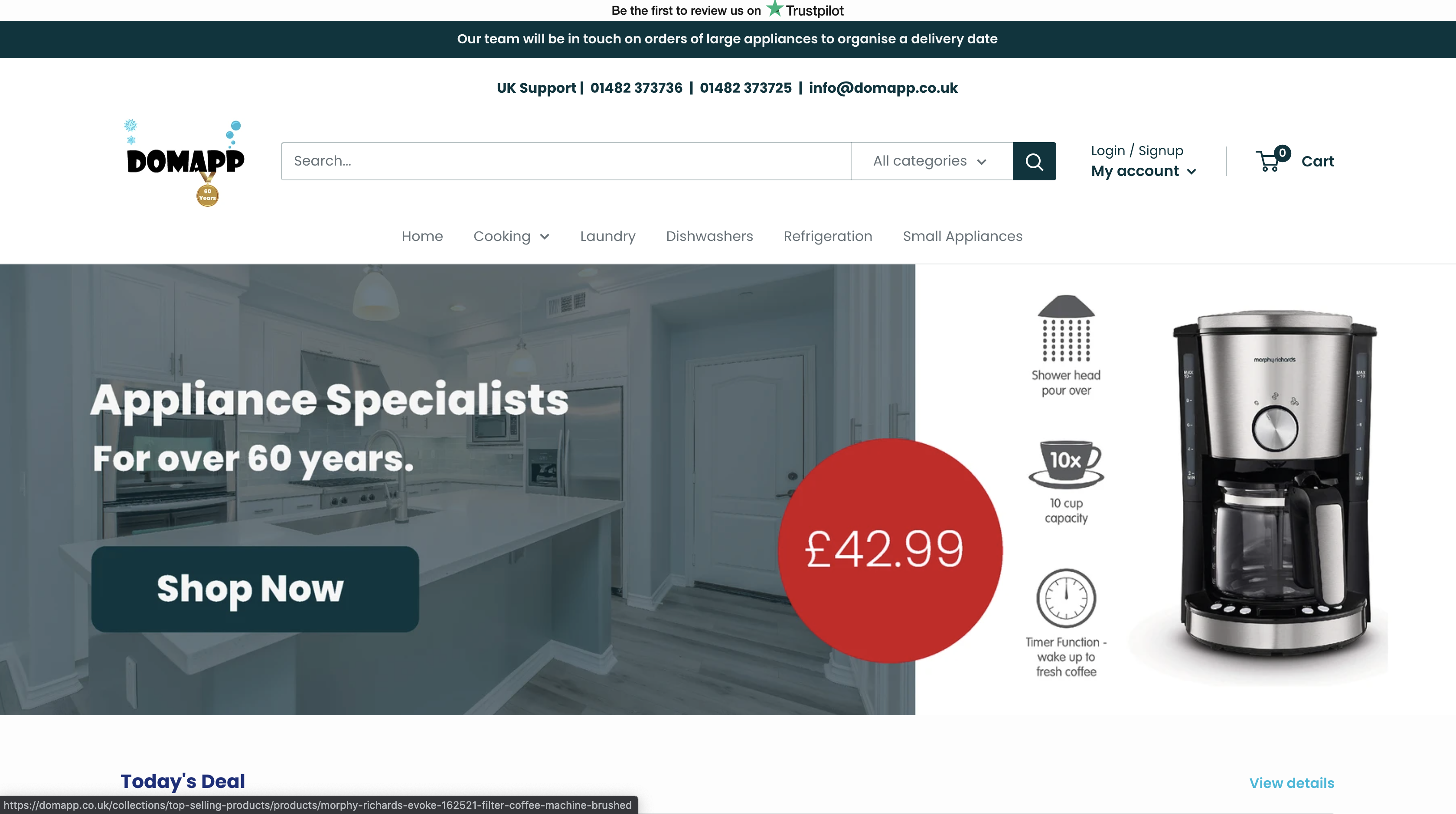 Domapp was established in 2016 due to the growing need for quality home appliances at great prices. We pride ourselves in our well rounded customer service and some of the best deals around. Whether it's just a new microwave or a full kitchen appliance suite, we have the knowledge to help you pick out the best match for you. Stocking all the major brands and with over 30 years experience in the electrical industry, our business is dedicated to provide a first class service every time.